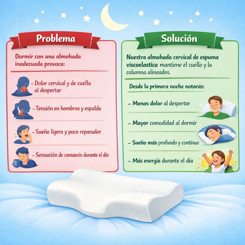 Almohada Cervical Ergonómica de Espuma Viscoelástica – Alivio del Dolor de Cuello
